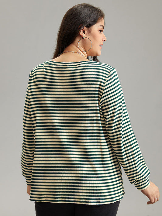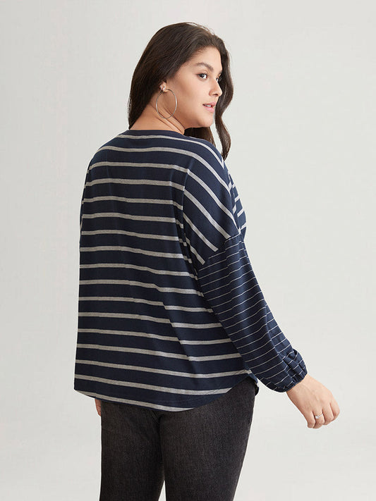 Striped Patchwork Curved Hem Stitch T-shirt