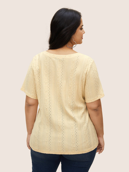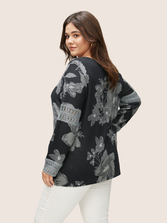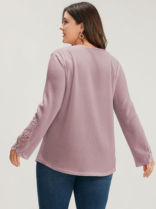 Crochet Lace Patchwork Floral V Neck T-shirt