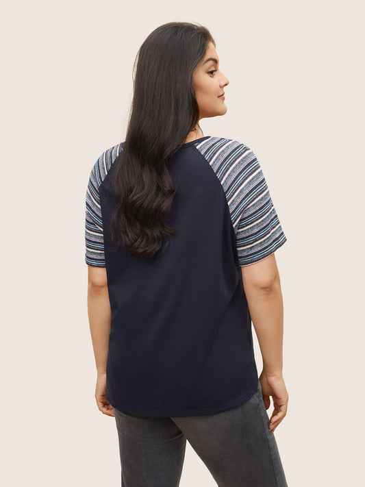 Color Striped Patchwork Raglan Sleeve T-shirt