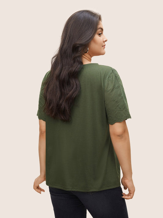 Solid Broderie anglaise Patchwork Dolman Sleeve T-shirt