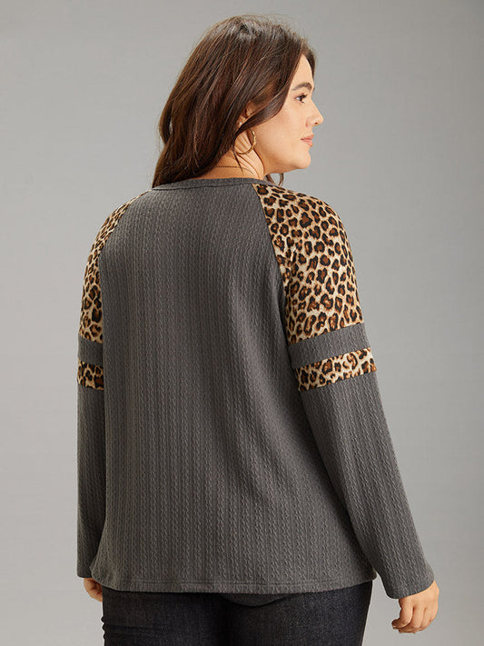 Waffle Knit Two Tone Notched Patchwork T-shirt