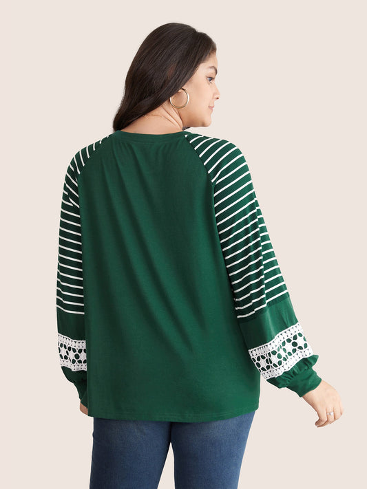 Striped Guipure Lace Raglan Sleeve T-shirt