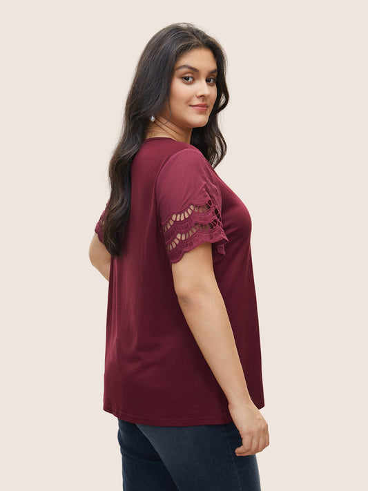 Patchwork Broderie Anglaise Scalloped Trim T-shirt
