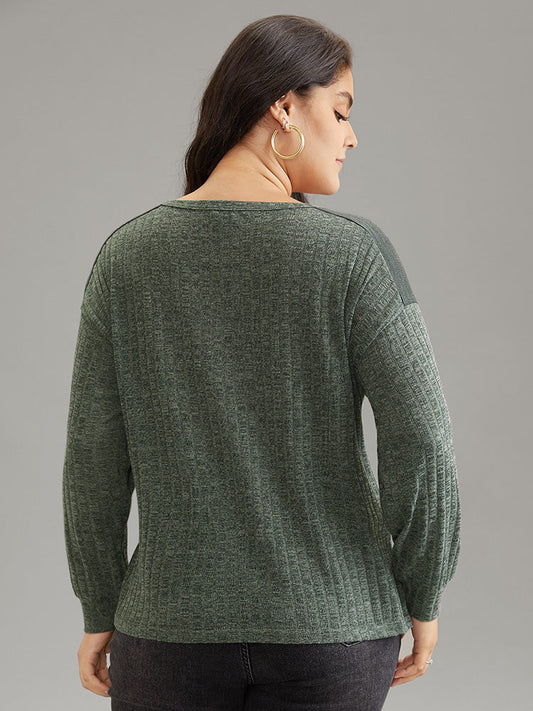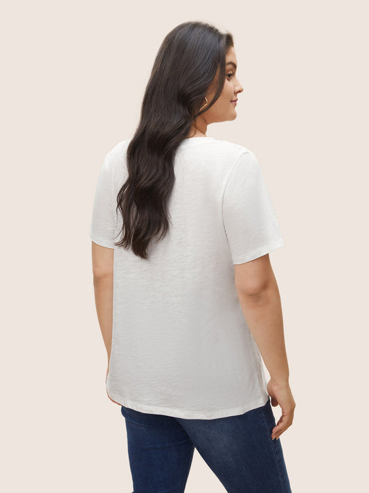 Plain Button Detail Round Neck Rib Knit T-shirt