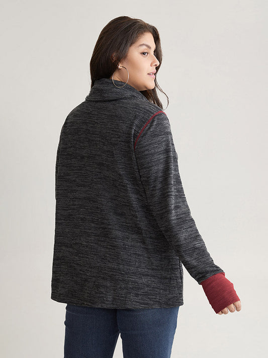 Contrast Heather Thumb Hole Turtleneck T-shirt