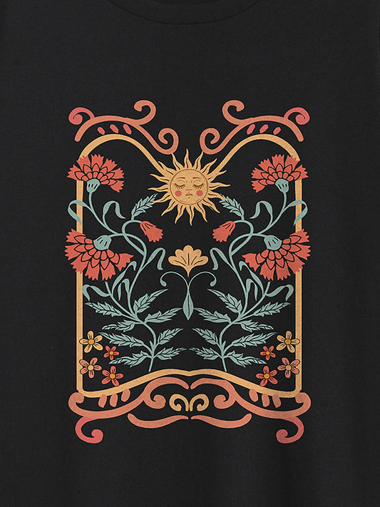 Floral Neckline Flutter Sleeve Contrast T-Shirt