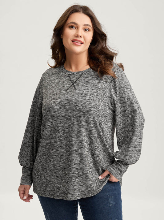 Scalloped Lace Neck Cinched Flared T-Shirt