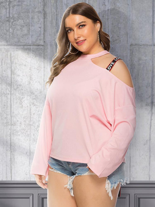 Letter Printed Suspender Hollow Out Round Neck T-shirt