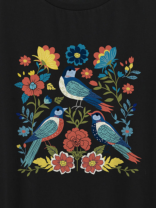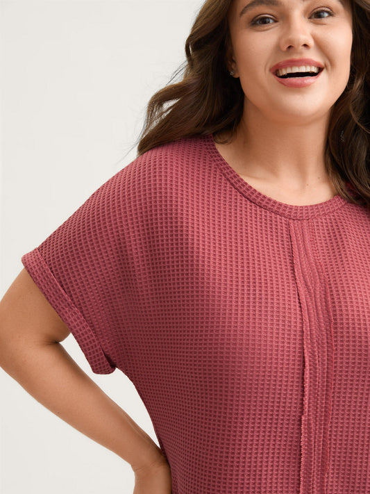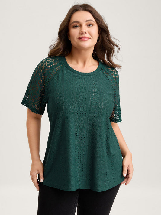 Eyelet Trim Lace Cut-Out Solid T-Shirt
