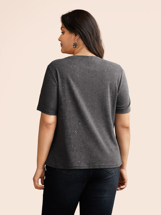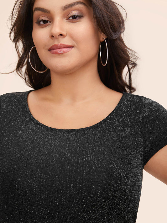 Glitter Textured Boat Neck Cap Sleeve T-shirt