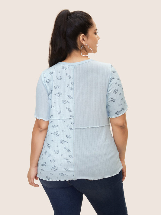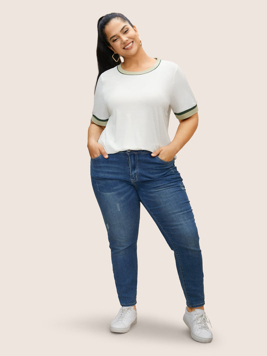 Heart Neckline Striped Pit Strip Ruched T-shirt