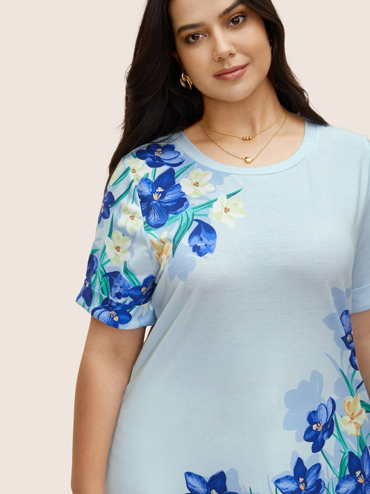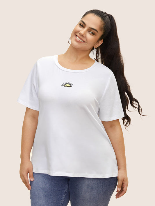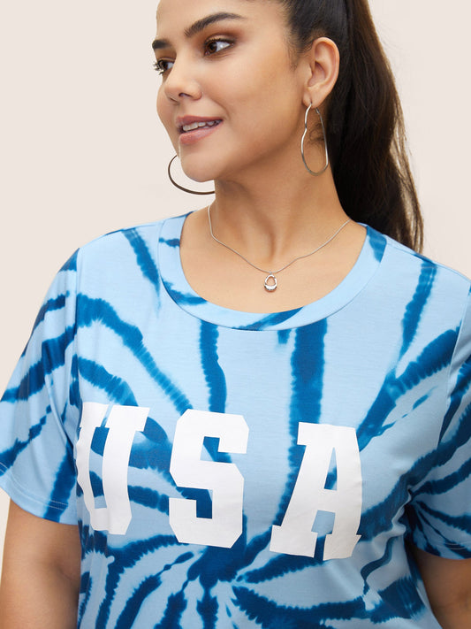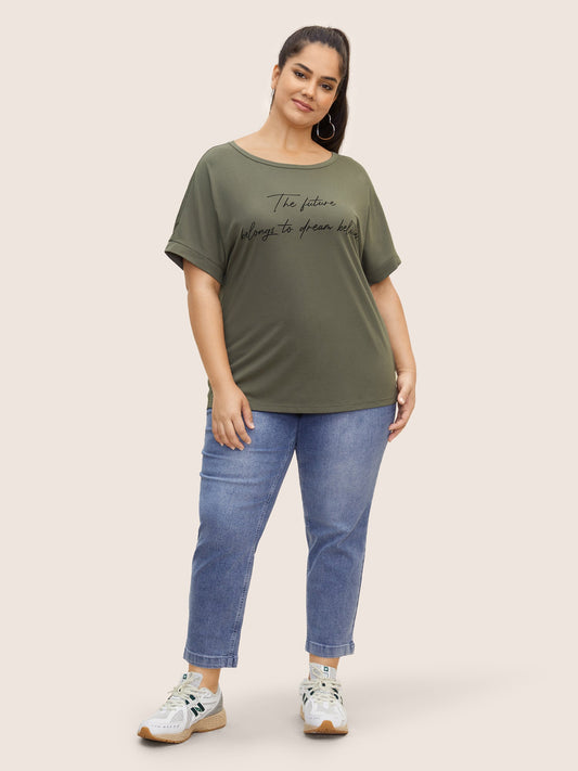 Letter Print Dolman Sleeve Curved Hem T-shirt