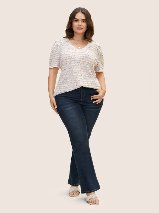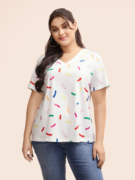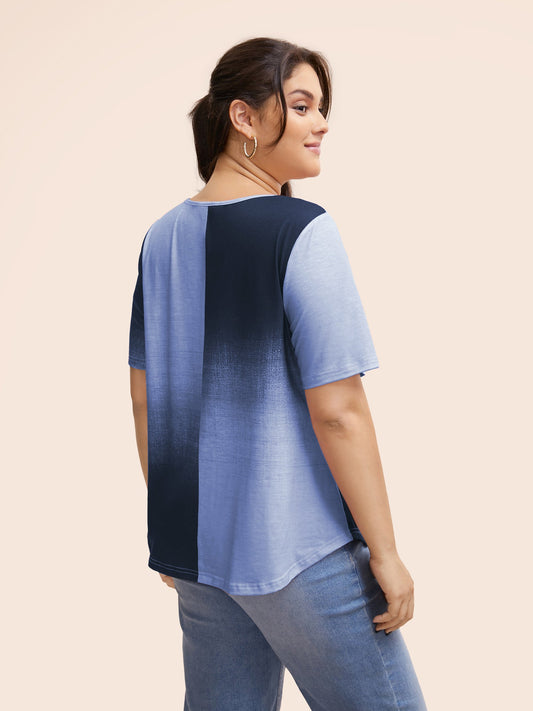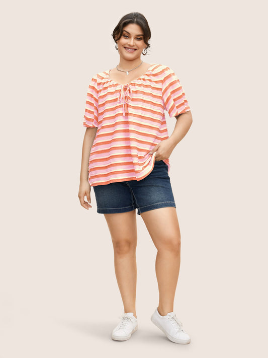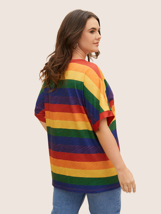 Colored Striped Crew Neck Batwing Sleeve T-shirt