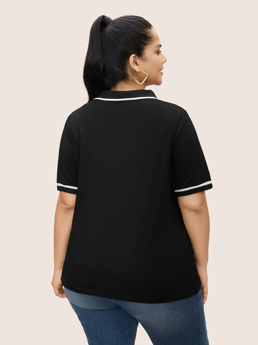 Polo Neck Contrast Trim Short Sleeve T-shirt