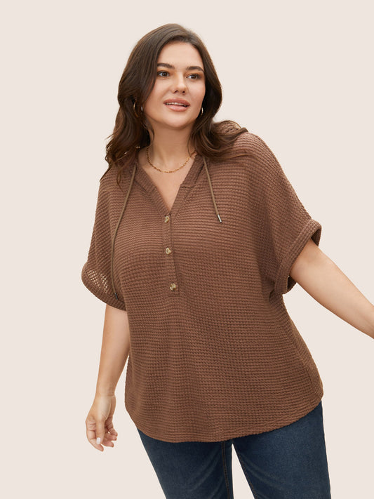 Solid Hooded Drawstring Dolman Sleeve T-shirt