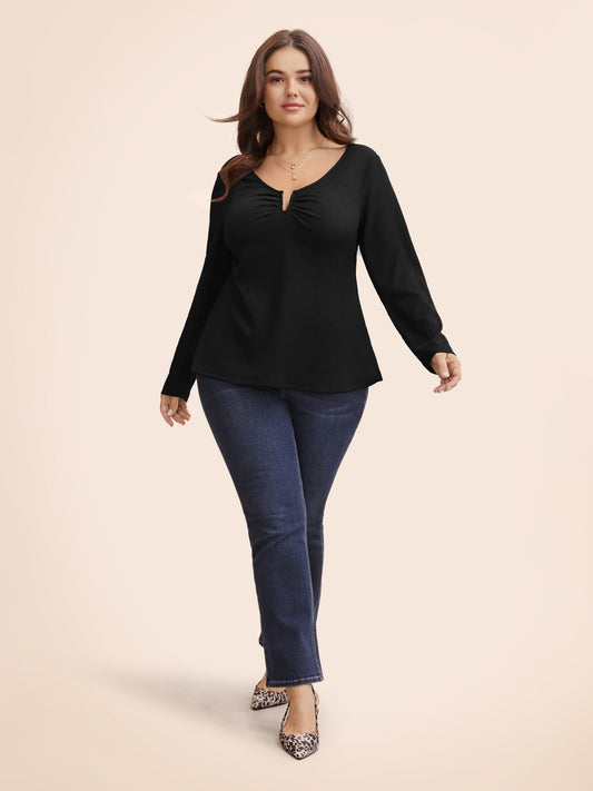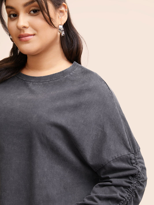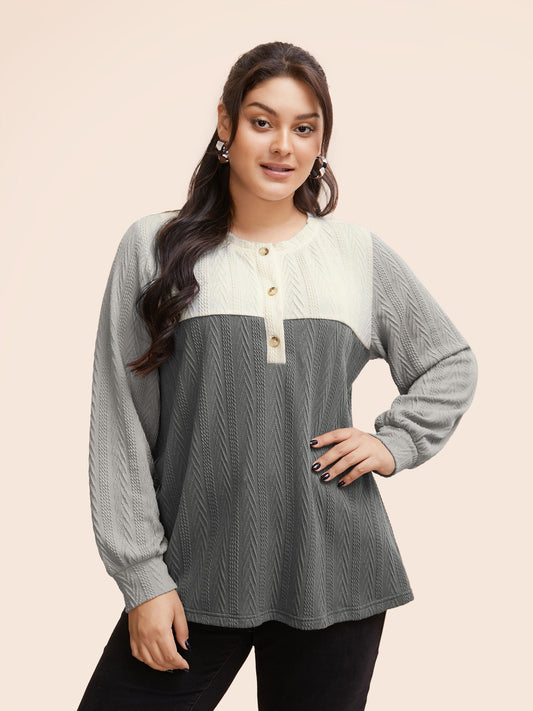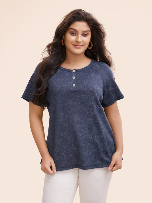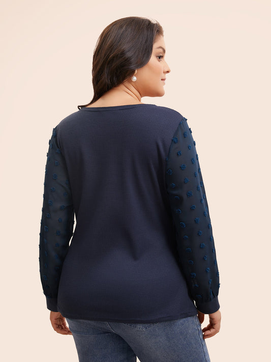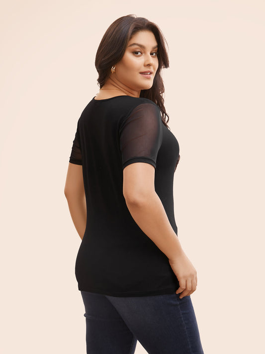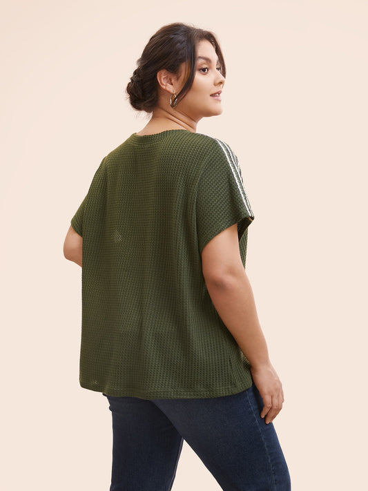 Waffle Knit Patchwork Mesh Overlapping T-shirt