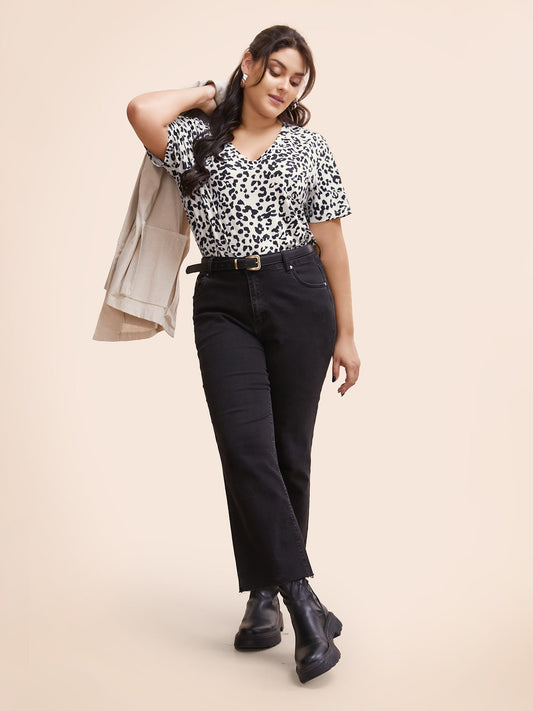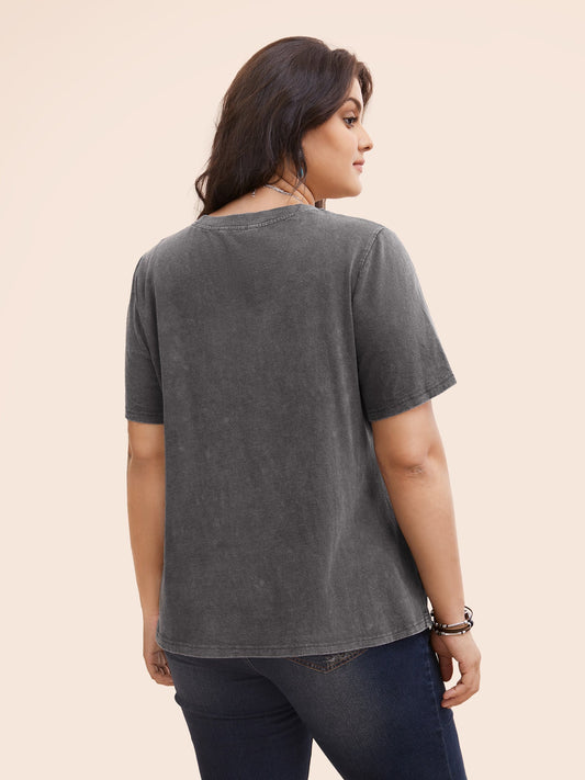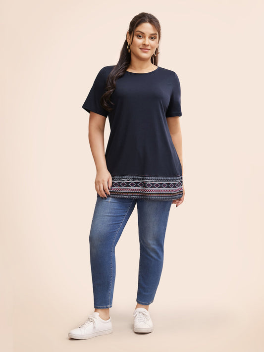 Crew Neck Bandana Patchwork Split Hem T-shirt