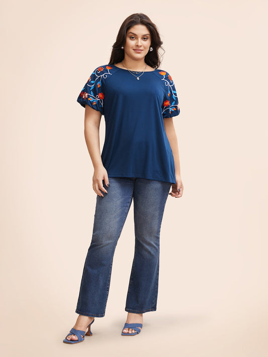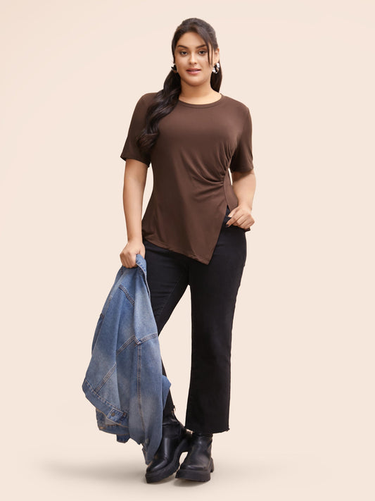 Crew Neck Pleated Dolman Sleeve T-shirt