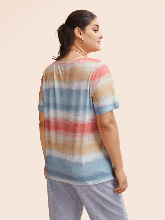 Multi-color Striped Sleeves Loose Fit T-shirt