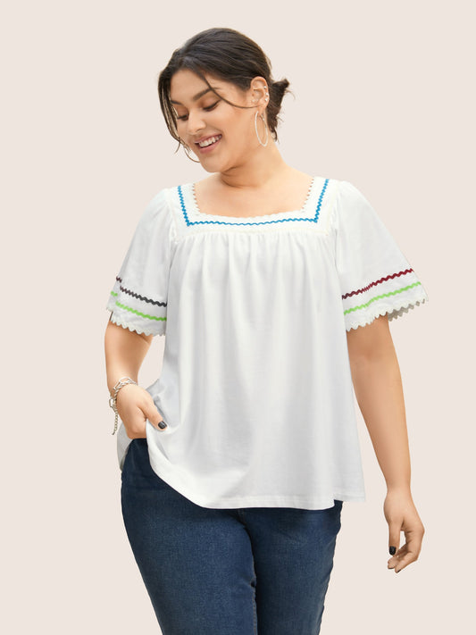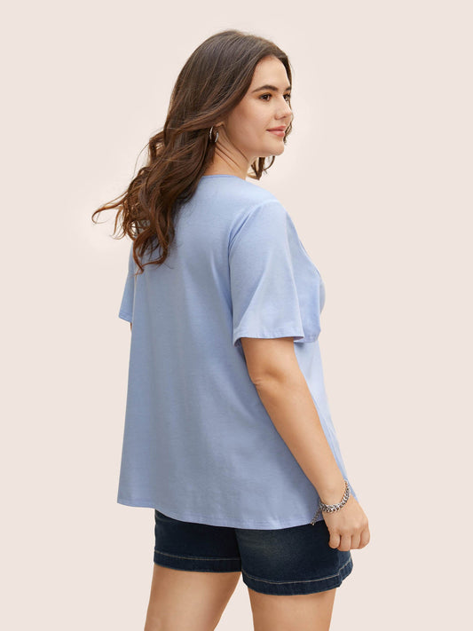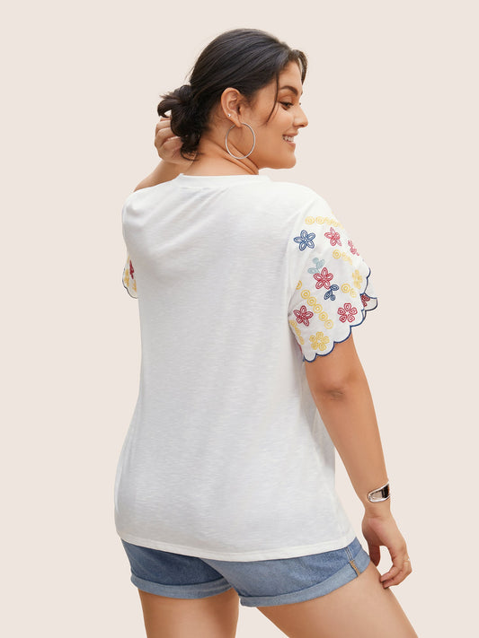 Contrast Floral Embroidered Petal Sleeve T-shirt