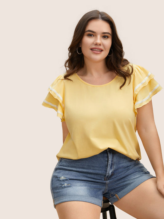 Round Neck Shirred Ruffle Sleeve T-shirt