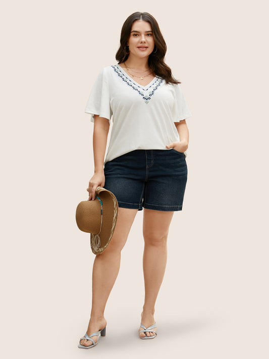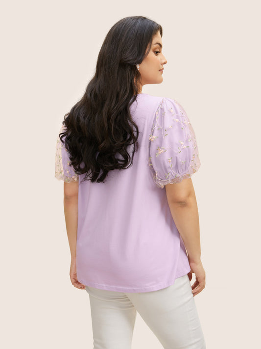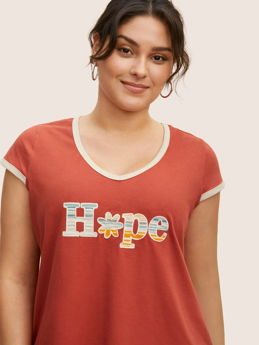 Cotton Letter Embroidered Patch Crew Neck T-shirt