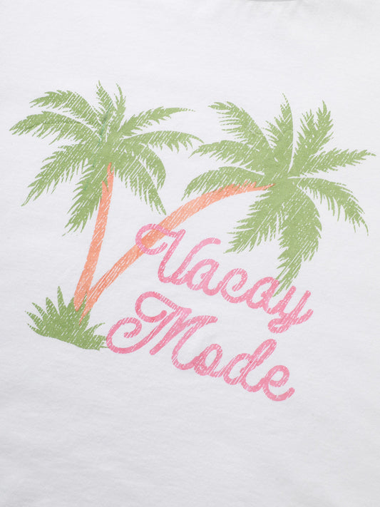 Cotton Vacation Tropical Print Round Neck T-shirt