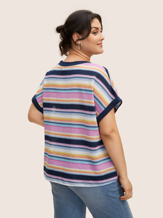Contrast Striped Dolman Sleeve Knit T-shirt