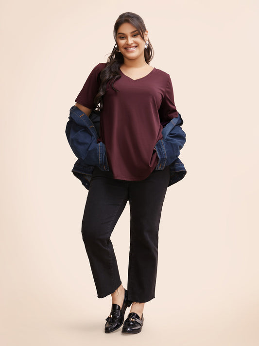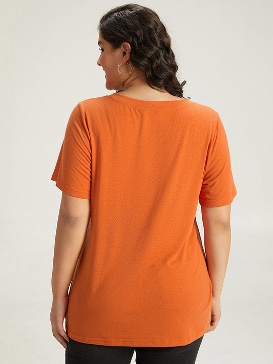 Solid Twist Back V Neck Short Sleeve T-shirt
