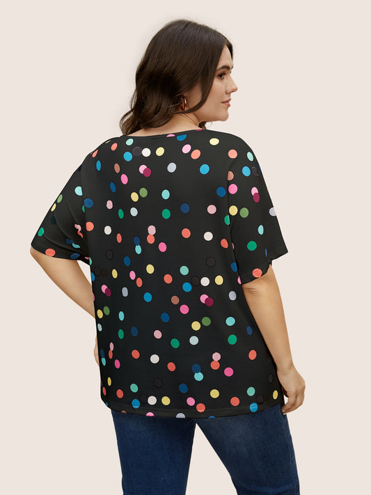 Contrast Polka Dot Keyhole Dolman Sleeve T-shirt