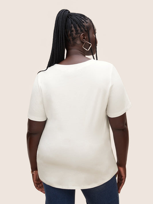 Round Neck Crochet Floral Patch Pocket T-shirt