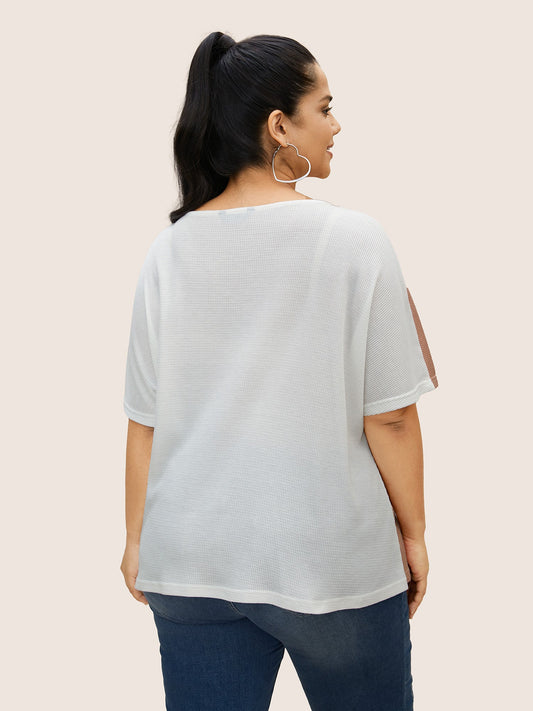 Contrast Waffle Knit Dolman Sleeve T-shirt