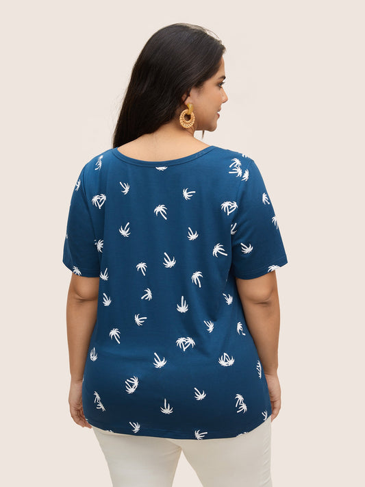 Coconut Tree Print Round Neck T-shirt