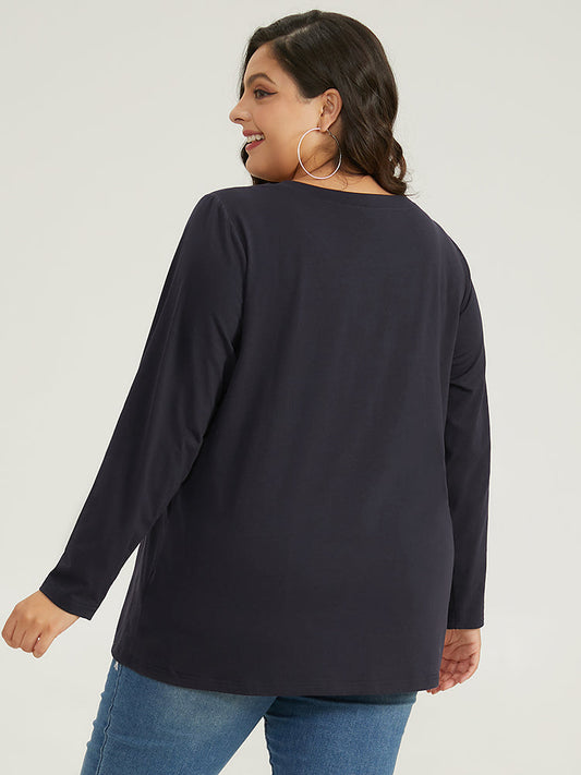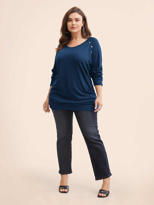 Plain Gathered Button Detail T-shirt