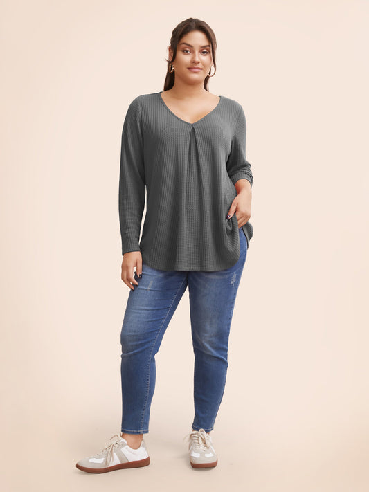 Plain Waffle Knit Scoop Neck Plicated Detail T-shirt