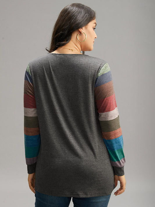 Striped Zipper Batwing Sleeve T-shirt