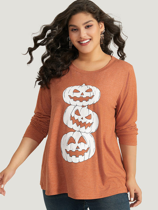 Halloween Three Pumpkin Print Crew Neck T-shirt