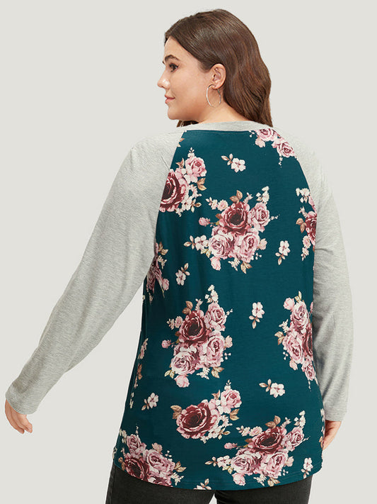 Floral Contrast Raglan Sleeve T-shirt