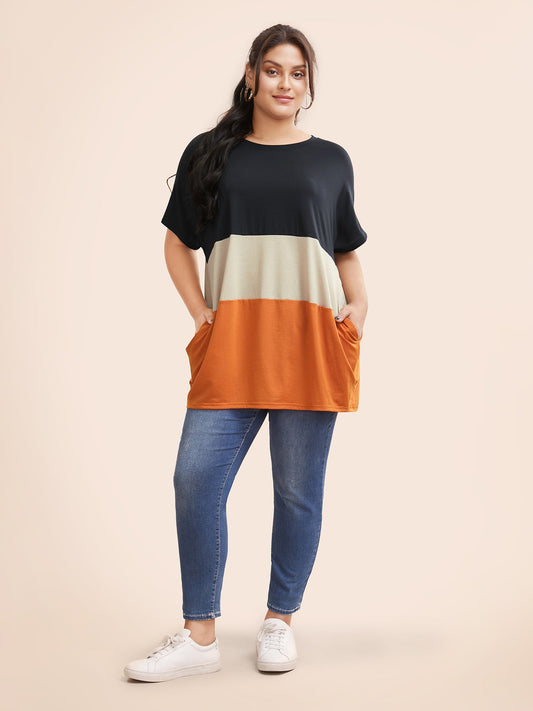 Halloween Colorblock Contrast Pocket Crew Neck T-shirt