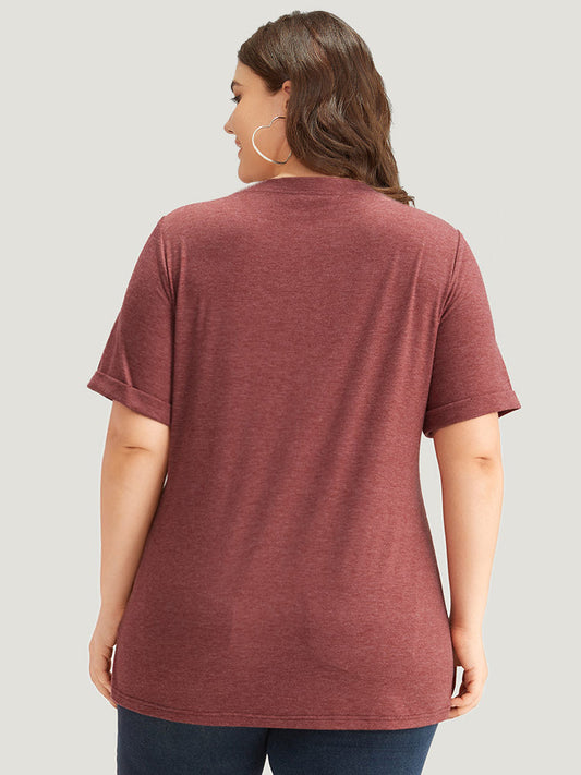 Leopard Print Round Neck Cuffed Sleeve T-shirt
