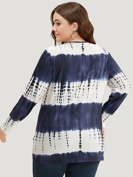 Halloween Striped Patchwork Round Neck Drop Shoulder T-shirt