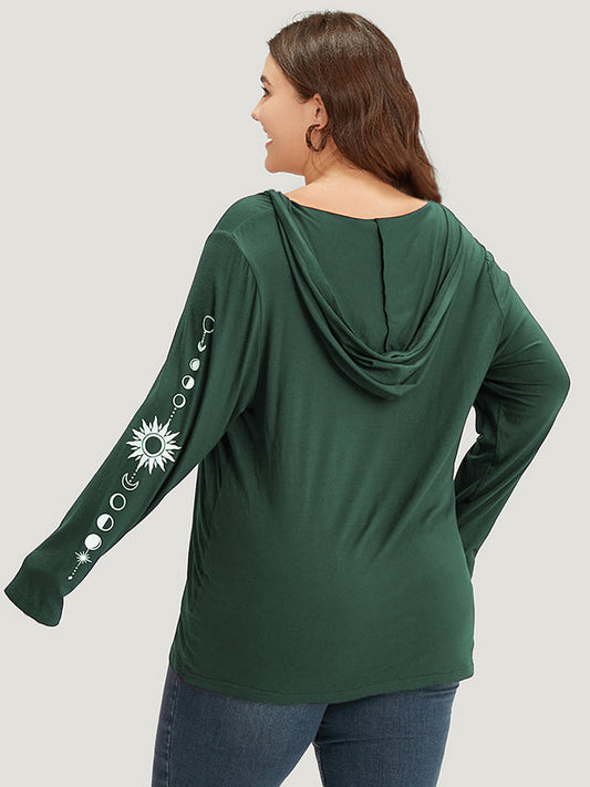 Moon & Star Print Hooded Long Sleeve T-shirt