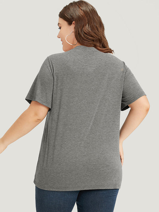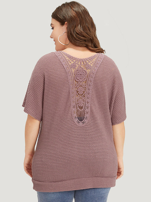 Plain Waffle Knit Plicated Detail Guipure Lace Flutter Sleeve T-shirt