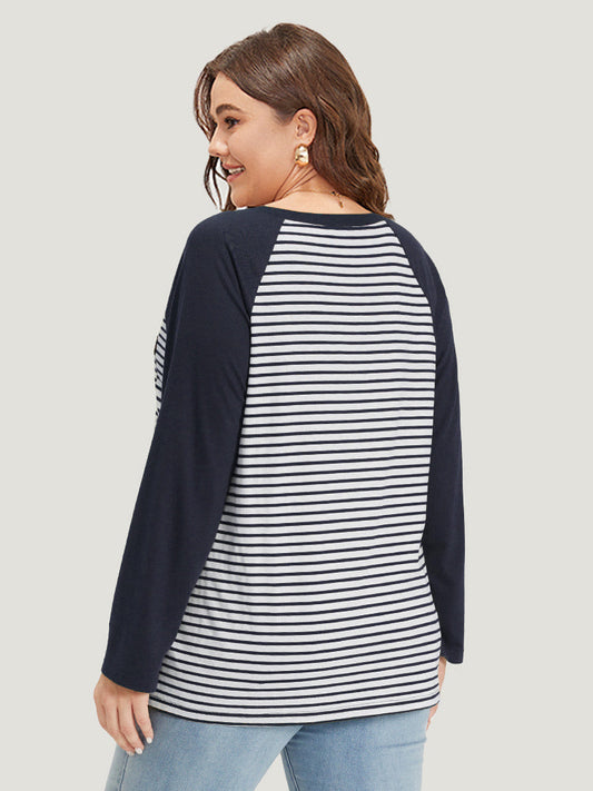 Striped Patchwork Patched Pocket Raglan Sleeve T-shirt