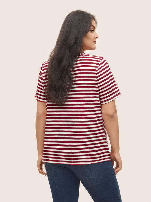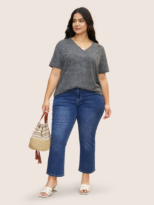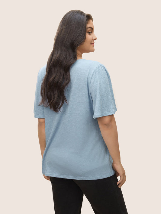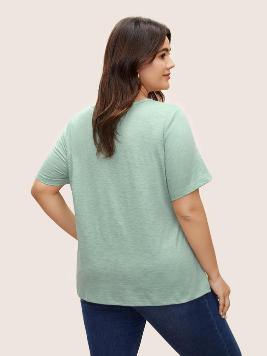 Cotton Round Neck Plain Patchwork Ruffles T-shirt