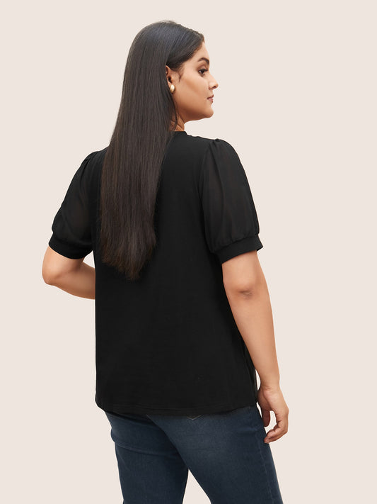 Solid Chiffon Patchwork Puff Sleeve T-shirt