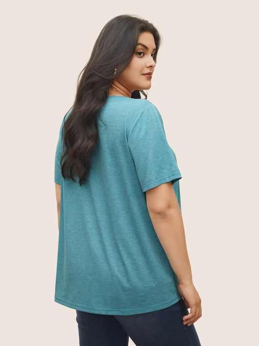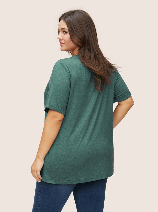 Round Neck Solid Tiered Fuzzy Trim T-shirt