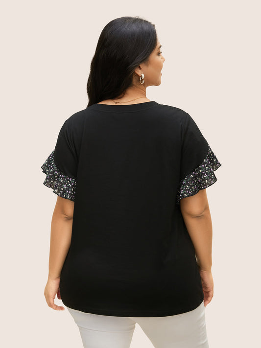 Ditsy Floral Patchwork Petal Sleeve T-shirt