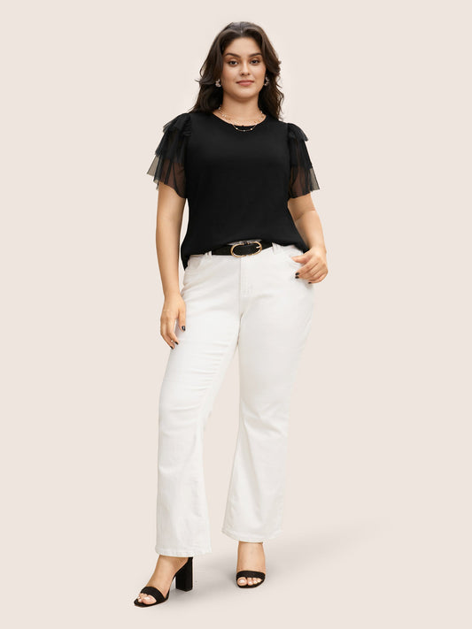 Crew Neck Tiered Mesh Patchwork T-shirt