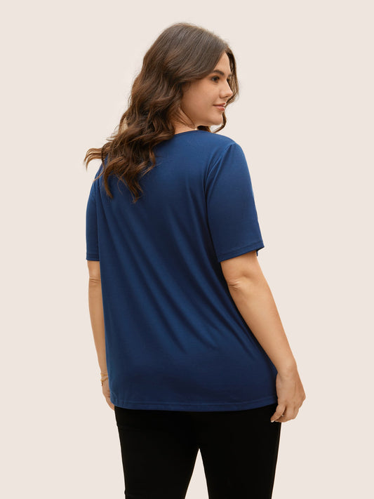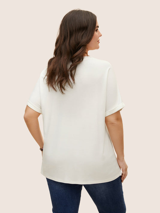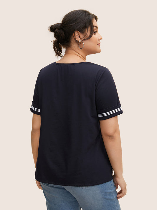 Round Neck Contrast Webbing Cuffed Sleeve T-shirt